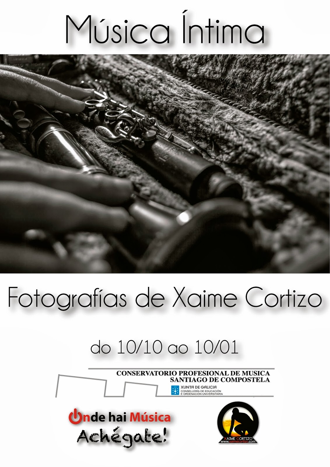 A EXPOSICIÓN E AS ACTIVIDADES RELACIONADAS TERÁN LUGAR EN DIVERSOS ESPAZOS DO CONSERVATORIO PROFESIONAL DE MÚSICA DE SANTIAGO DE COMPOSTELA ENTRE O 10/10/2013 E O 10/01/2014. PROXECTARÁNSE AS IMAXES DA EXPOSICIÓN VIRTUAL, TÓDOLOS MARTES E XOVES DE 18:30 A 21:30H NA ENTRADA DO PROPIO CONSERVATORIO.